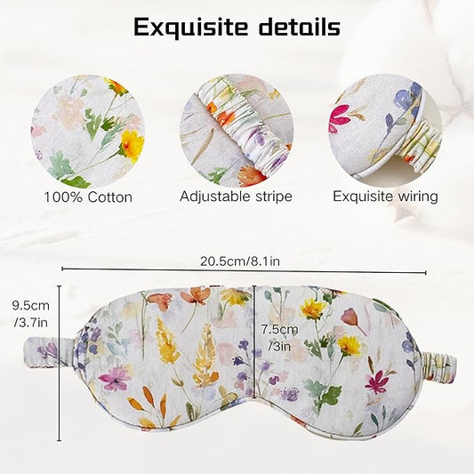 Pure Cotton Eye Mask 100% Organic Cotton Sleep Mask for Girls,Travel Breathable Sleep Mask,Adjustable Strap, Hypoallergenic, Cooling with Travel Bag Gift Package(Floral)