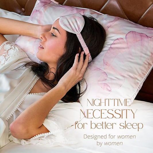 Grace & Company Silky Satin Eye Mask for Women - Premium Pink Satin Silk Sleep Mask - Hydrating, Ultra Soft & Lightweight Vegan Sleeping Mask - Peony