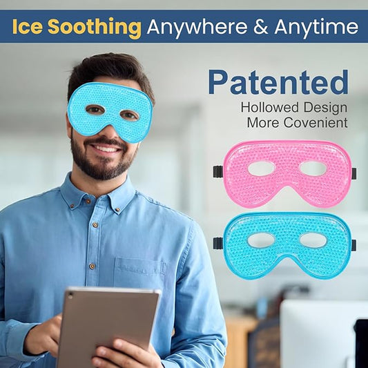 Cooling Eye Mask, Gel Eye Mask Hot Cold Use, Cold Eye Mask for Puffy Eyes, Dry Eyes, Headaches, Migraines, Sinus, Dark Circles (2 blue)
