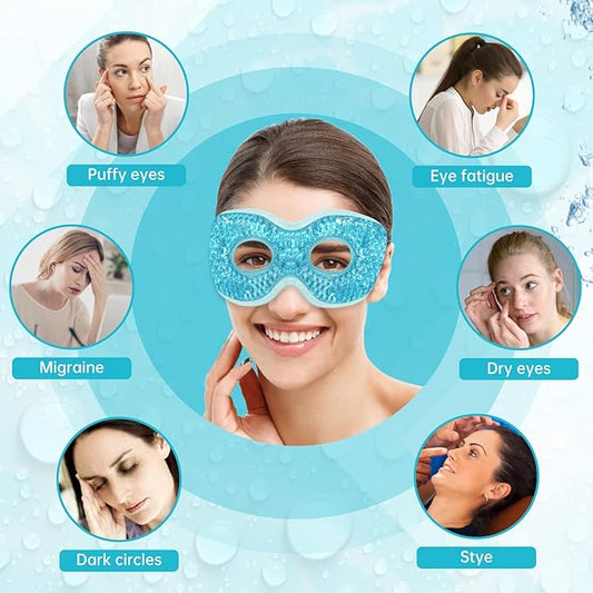 2 PCS Ice Eye Mask Reusable Ice Pack Hot/Cold Compress Gel Bead Cooling Mask for Puffiness/Dark Circles/Headaches/Migraines/Stress Relief (Blue)