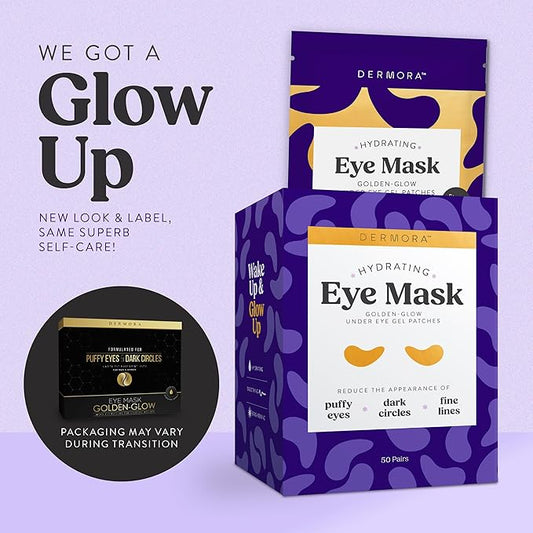 DERMORA Golden Glow Under Eye Patches (50 Pairs Eye Gels) - Rejuvenating Treatment for Dark Circles, Puffy Eyes, Refreshing, Revitalizing, Travel, Wrinkles