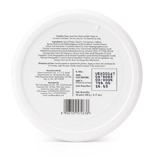 mCaffeine Green Tea Hydrogel Under Eye Patches for Dark Circle, Fine Lines & Wrinkles Reduction | Cooling Under Eye Patch Mask for Instant De-Puffing | 30 Pairs