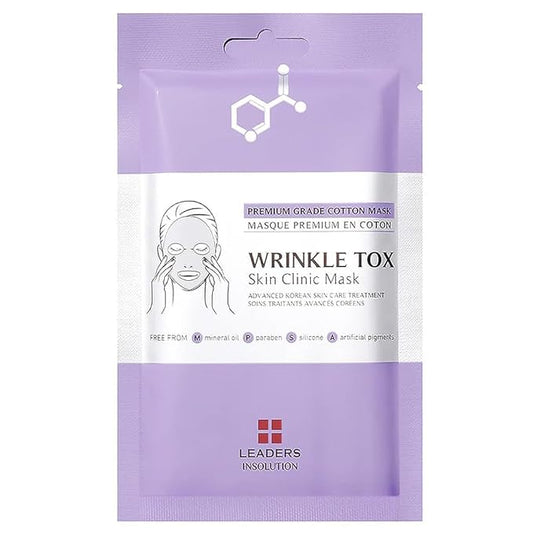 Leaders Insolution Wrinkle Tox Skin Clinic Mask | Adenosine-Infused Anti-Aging Facial Sheet for Fine Lines, Wrinkles, and Firmness | Premium Grade Cotton, Collagen Boosting (5 Sheets)
