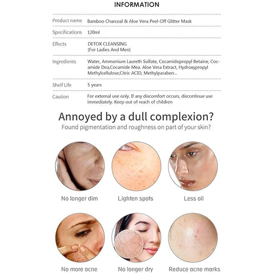 AICHUN BEAUTY Bamboo Charcoal Aloe Vera Peel-Off Glitter Mask Oil-Control Anti-Acne Moisturizing Detox Cleansing 10 minutes Facial Therapy 120ml/4.06fl.oz