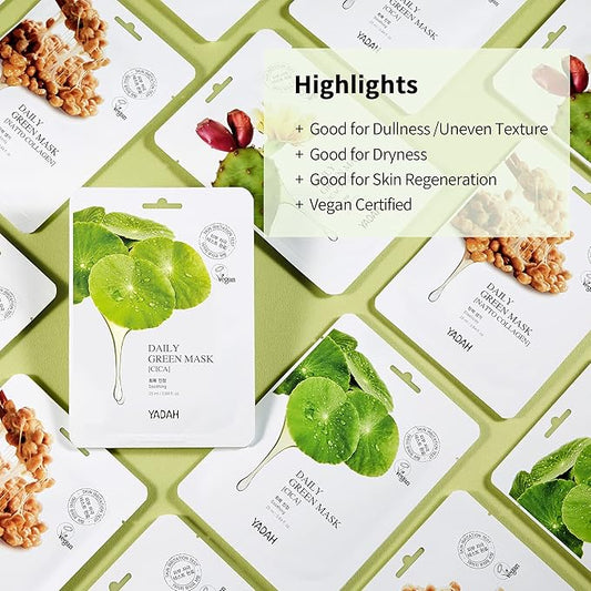YADAH Daily Green Facial Sheet Mask, Cactus, Pack of 5 – Vegan for Skin Soothing