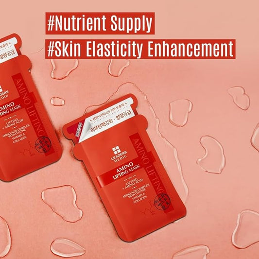 Leaders Mediu Amino Firming & Lifting Facial Sheet Mask | Amino Acid Complex, Vitamin A, Collagen | Reduces Fine Lines, Improves Elasticity, for All Skin Types (10 Sheets)