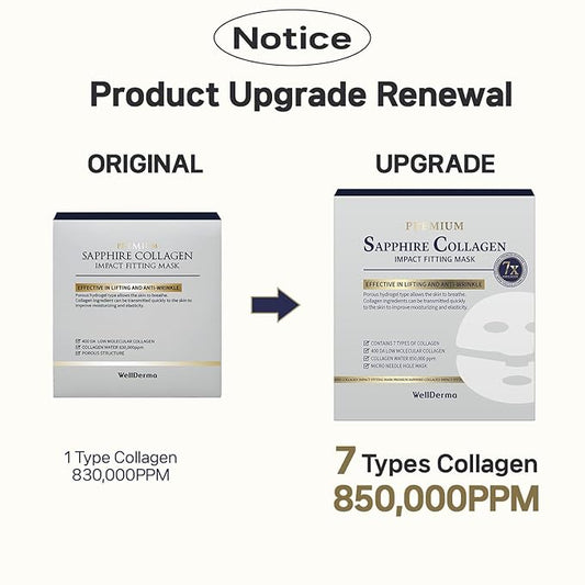 WELLDERMA Sapphire Premium Collagen Impact Fitting Mask 16 EA - Korean Face Sheet Mask for rough and dry skin- Hydrating overnight sheet mask with Patented Porous Structure Hydrogel Type - Niacinamide