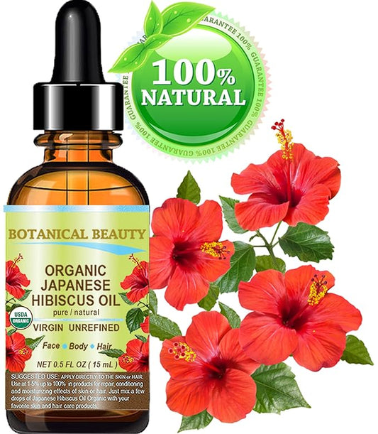 Botanical Beauty Organic HIBISCUS OIL (Hibiscus Sabdariffa) JAPANESE 100 Pure Natural VIRGIN UNREFINED COLD PRESSED Anti Aging, Vitamin E oil for FACE, SKIN, HAIR GROWTH 0.5 Fl.oz.- 15 ml