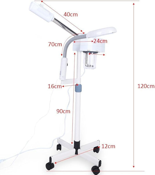 GOTOTOP Facial Steamer with Magnifying Lamp 3In1 Uv Facial Steamer Cold Light Led 5X Magnifier Floor Lamp 800W for Salon Spa Beauty,White