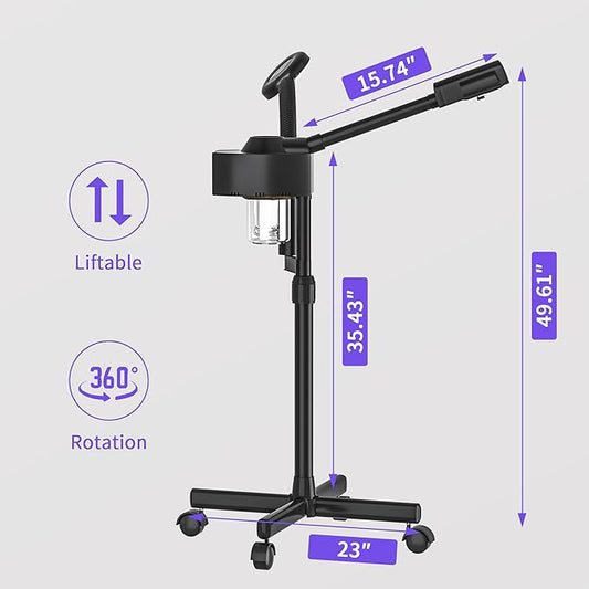 Professional Facial Steamer, Face Steamer on Wheels, Ozone Face Steamer, Facial Steamer for Spa, Salon and at Home Use
