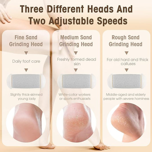 Electric Foot File for Dead Skin Removal, Callus Remover for Feet, Featuring a Dander Vacuum Foot Scrubber with 2 Speeds and 6 Grinding Heads, Foot Calluses Remover Kit for Cracked Skin.