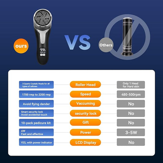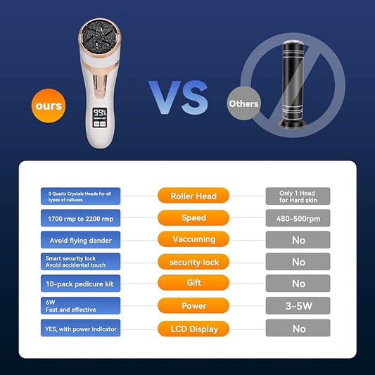Hoxida Electric Callus Remover for Feet (with Dander Vacuum Cleaner), Quartz, Rechargeable Foot Pedicure Tools Foot File, Professional Foot Care Kit Deadskin Remover with 3Heads&2Speed,LCD Display