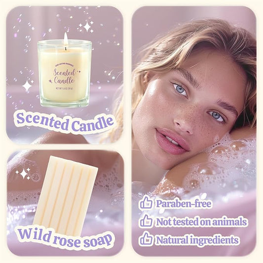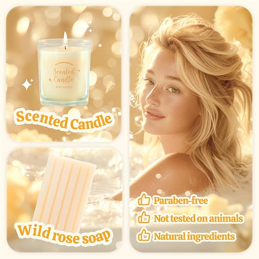 Bath Set for Women, 6Pcs Spa Gift Set, Spa Gifts for Women, Spa Kit with Scented Candle, Essential Oil, Bath Salt, Bath Bomb, Salt Scrub, Mothers Day Gifts for Mom