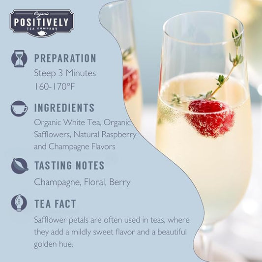 Organic Positively Tea Company, White Champagne Raspberry White Tea, Loose Leaf, 4 Ounce