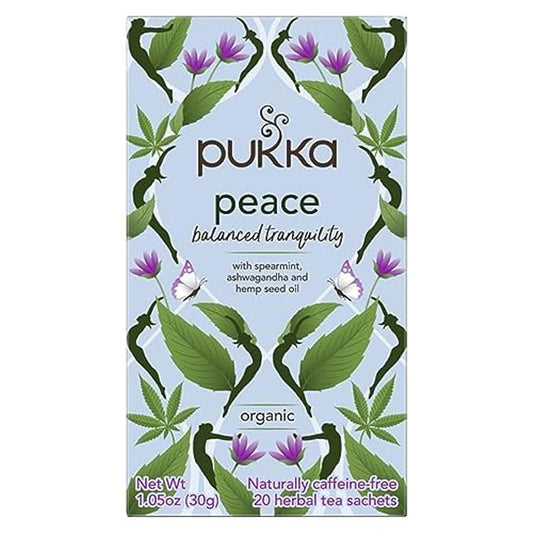 Pukka Organic Tea Bags, Peace Herbal Tea with Spearmint, Ashwagandha, and Hemp Seed Oil, Perfect for Balanced Tranquility, Caffeine Free, 20 Count (Pack of 4), 80 Bags