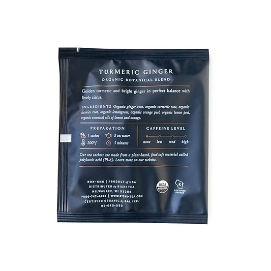Rishi Tea Turmeric Ginger Herbal Tea - Organic Sachet Bags, Caffeine Free Ayurvedic Digestive Blend with Spicy Ginger & Citrus - 50 Count