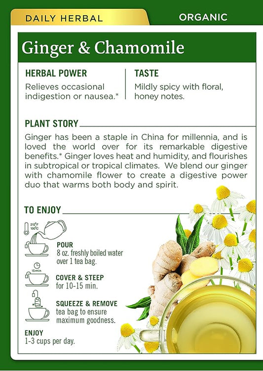 Traditional Medicinals Organic Ginger & Chamomile Herbal Tea, Relieves Occasional Indigestion or Nausea, (Pack of 1) - 16 Tea Bags