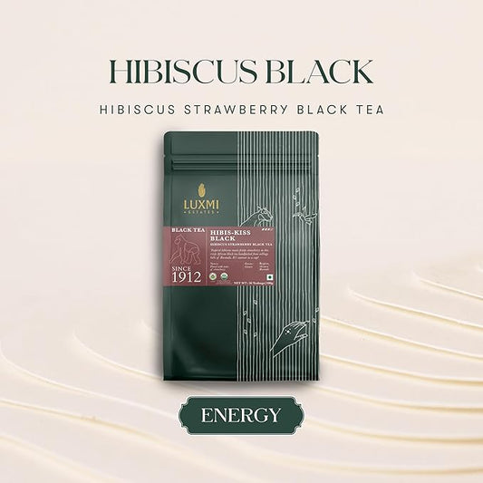 Luxmi Estates - Hibis-Kiss - Organic Hibiscus Tea - 50 Tea Bags | With Hibiscus, Strawberry, Organic Black Tea and Other Natural Extracts | Juicy, Triopical and Fresh