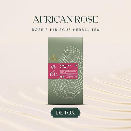 Luxmi Estates - African Rose - Organic Hibiscus Rose Tea - 25 Tea Bags | With Soothing Rose and Hibiscus | Great for Skin DeTox - Supports a Healthy Glow