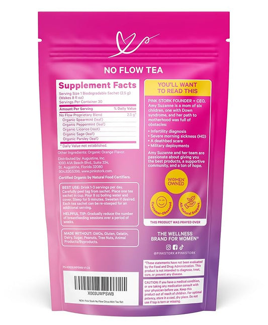 Pink Stork No Flow Tea, Organic Sage Tea to Help Dry Up Breast Milk Supply, Stop Breastfeeding and Wean Lactation Naturally, Postpartum Essentials - 30 Cups