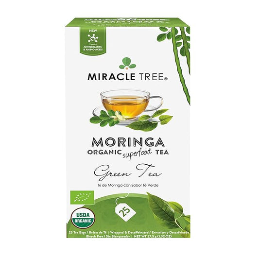 Miracle Tree - Organic Moringa Superfood Tea, 25 Individually Sealed Tea Bags, Green Tea (Keto, Detox, Energy & Immunity Booster, Vegan, Gluten-Free, Organic, Non-GMO, Decaffeinated)