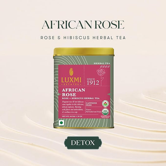 Luxmi Estates - African Rose - Organic Hibiscus Rose Tea - Loose Leaf - 50g (25 Cups) | With Soothing Rose and Hibiscus | Great for Skin DeTox - Supports a Healthy Glow