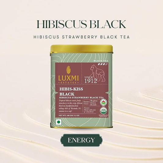 Luxmi Estates - Hibis-Kiss - Organic Hibiscus Tea - Loose Leaf - 100g (50 Cups) | With Hibiscus, Strawberry, Organic Black Tea and Other Natural Extracts | Juicy, Triopical and Fresh