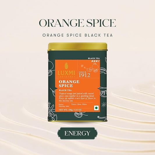 Luxmi Estates - Orange Spice - Organic Black Darjeeling Tea - Loose Leaf - 100g (50 cups) | Limited Fall Tea | Special Edition Autumn Tea | Smooth, Flavorful, Robust and Caffeinated