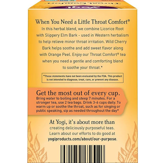 Yogi Tea - Throat Comfort (6 Pack) - Soothes the Throat with Wild Cherry Bark, Licorice Root, Mullein, and Ginger - Caffeine Free - 96 Organic Herbal Tea Bags