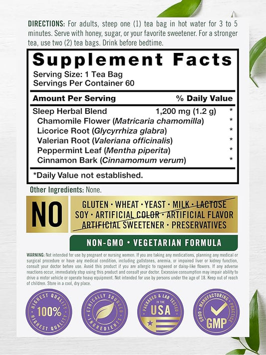 Carlyle Sleep Tea Extra Strength | 60 Tea Bags | Caffeine Free | Bedtime Tea | Herbal Blend with Valerian Root | Vegetarian, Non-GMO, Gluten Free