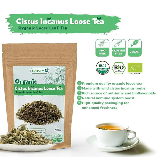 TRUSTY Cistus Loose Tea 7oz (200g) โ Premium Wild Incanus Organic Leaf โ Herbal Tea Loose Leaf for Immune System Boost and Gut Support โ Nutrient-Rich Rockrose