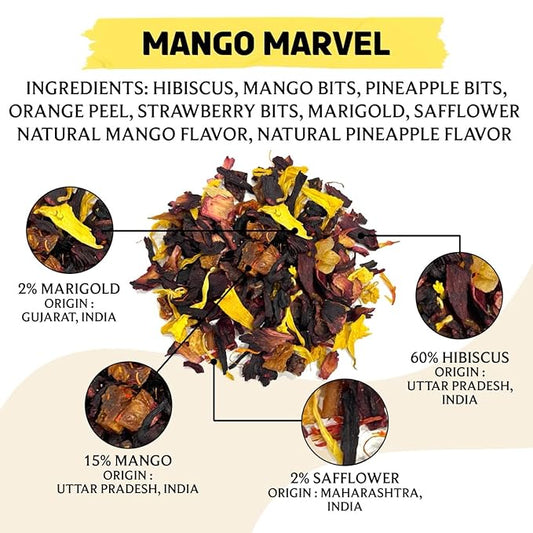 BREWIX, Mango Marvel Herbal Loose Tea (50+ Cups) | Made with Hibiscus, Mango, Pineapple, Orange Peel, Strawberry | Non-Caffeinated | Make Hot or Iced | Resealable Pouch