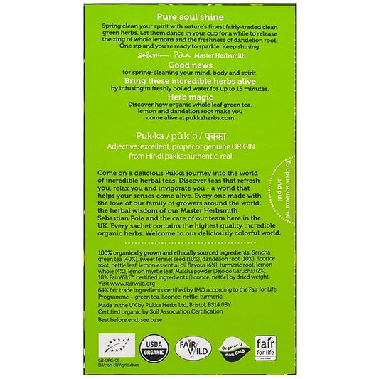 Pukka Organic Herbal Tea Clean Matcha Green 20 Tea Bags
