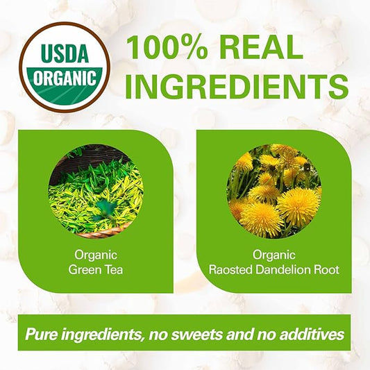 WT WEETEE Organic Green Tea Dandelion, Made of Organic Roasted Dandelion Root and Green Tea, 50 Tea Bags, Rich in Antioxidants & Liver Support