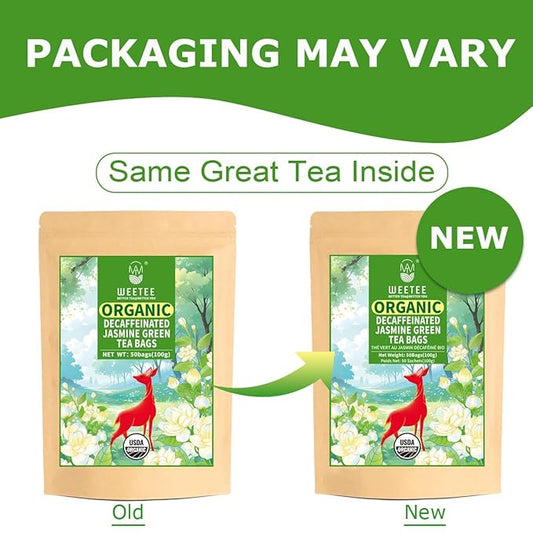 Organic Decaf Jasmine Tea Bags, Decaffeinated Green Tea Infused with Jasmine Aroma, Refreshing & Relaxing, Tagless, Sugar Free