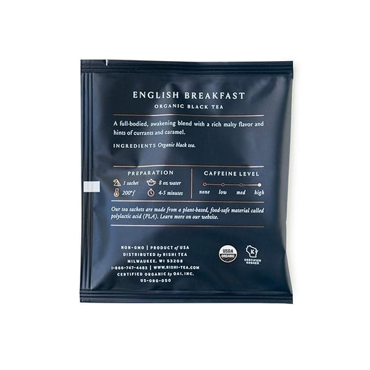 Rishi Tea English Breakfast Tea - Organic Sachet Tea Bags, Energizing & Caffeinated Pure Black Tea, Ideal for Hot or Iced Tea - 50 Count