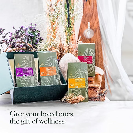 Luxmi Estates - Tea Set - All Day Wellness - 4 Packs with Valerian, Ashwagandha, Turmeric Ginger and Hibiscus Rose Tea - Great Gift Set for Adults