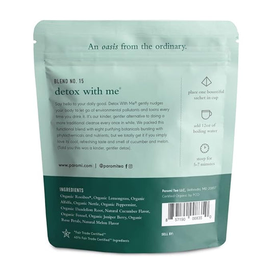 Paromi Detox with Me Rooibos, Organic Herbal Tea, Resealable Pouch, 15 Count