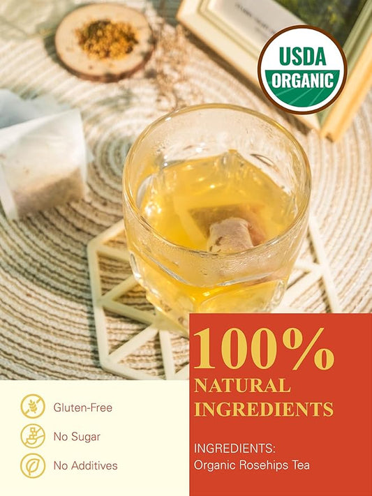 GLDNT Organic Rosehips Tea Bags, Organic Rose Hips, Fruity Flavor and Aroma, Caffeine Free, 100 Count