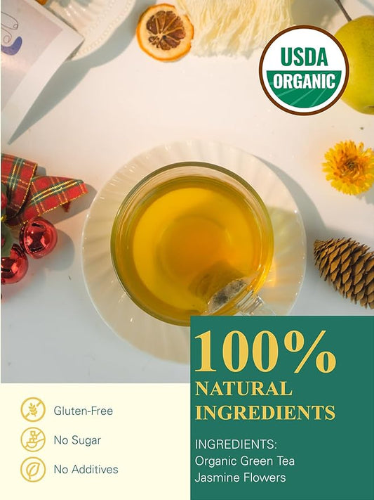 GLDNT Organic Jasmine Green Tea Bags, Organic Green Tea Scented with Jasmine Flowers, Floral Aroma & Smooth Taste, 100 Count