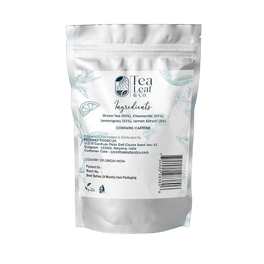 Tea Leaf & Co. Chamomile Green Tea Bags (50 Count), Green Tea with Lemon Extract and Lemongrass, Caffeinated, Real and Natura Green Tea, Blended with Fresh Herbs and Spices, Gluten Free