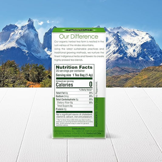 Garden Of The Andes Pure Peppermint Herbal Tea -20 Individually Wrapped Tea Bags - Caffeine Free