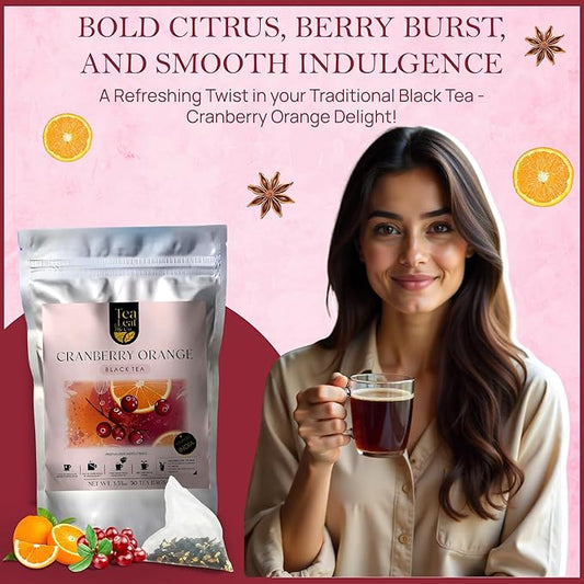 Tealeaf & Co. Cranberry Orange Black Tea Bags Blended with Fresh Herbs and Spices - Organic Black Tea Bags with Orange Peel, Star Anise & Hibiscus - Low Caffeine - Gluten Free - 50 Teabags