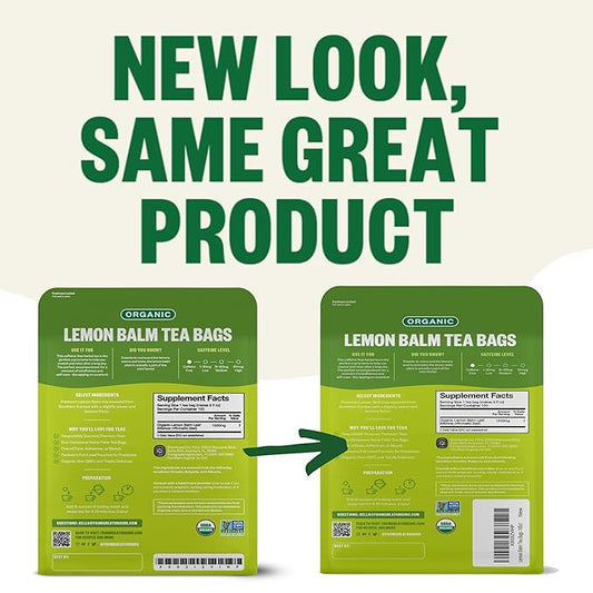 FGO Organic Lemon Balm Tea, 100 Count, Eco-Conscious Herbal Tea Bags, Resealable Bag, Caffeine Free, Packaging May Vary (Pack of 1)