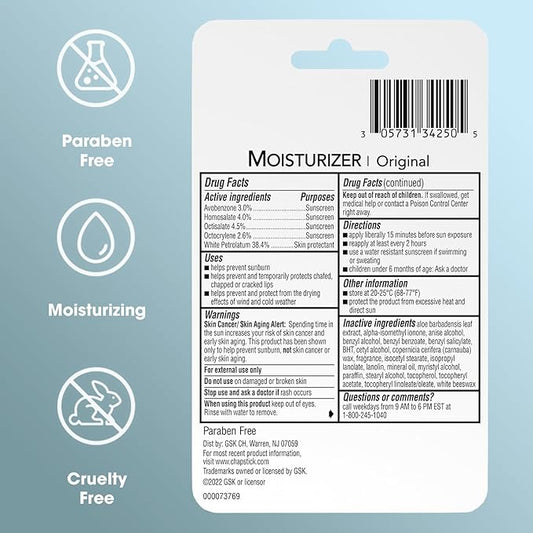 ChapStick SPF Lip Balm 3-Pack – Original 2-in-1 Lipcare with SPF 12, Ultra Hydrating Formula with Aloe Vera and Vitamin E, 0.15 Oz Ea