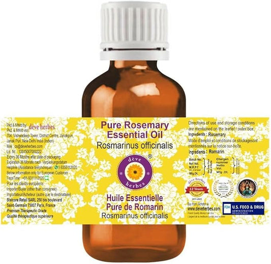 Deve Herbes Pure Rosemary Essential Oil (Rosmarinus officinalis) Steam Distilled 15ml (0.50 oz)