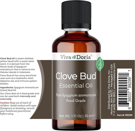 Viva Doria 100% Pure Clove Bud Essential Oil, Undiluted, Food Grade, 30 mL (1 Fluid Ounce)