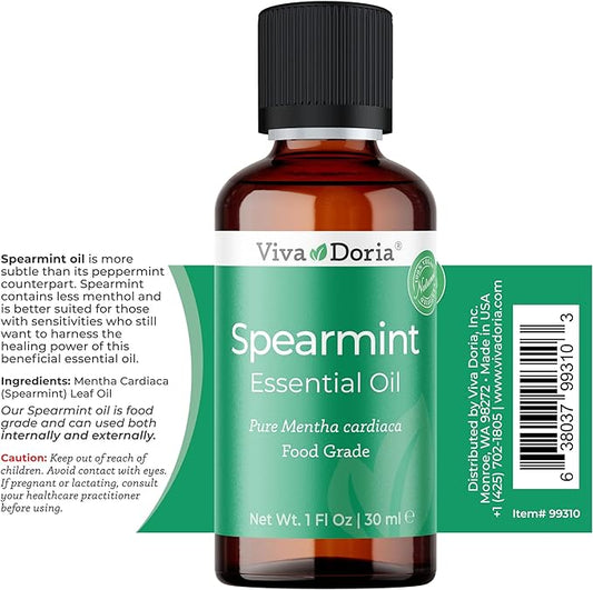 Viva Doria Spearmint Essential Oil, 100% Pure, Natural Spearmint Essential Oil, Undiluted, for Aromatherapy | Food Grade, 30 mL (1 Fluid Ounce)