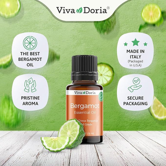 Viva Doria Bergamot Essential Oil, 100% Pure, Natural, Italian Bergamot Essential Oil, Undiluted, for Aromatherapy | Food Grade, 15 mL (0.5 Fluid Ounce)