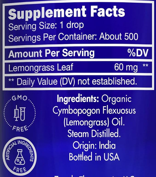 Organic, Lemongrass Essential Oil, Food Grade, Edible – 100% Pure, Lemongrass Oil, by Zongle Therapeutics, 1 OZ